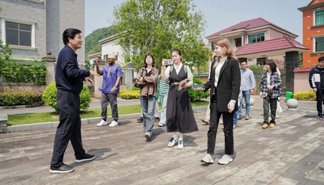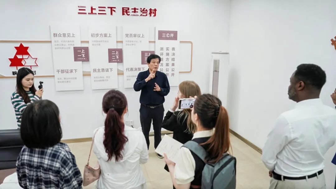 外籍青年们不光边走边看,还坐下来积极交流,在村口古色古香的凉亭里,新时代枫桥经验研究院院长丁光飞与青年们围坐畅谈。从党建引领到“三治融合”,从和合文化到全过程人民民主,从中医之道到中国之治,深入浅出的讲解引发阵阵掌声。中外青年结合自身生活经验对比中外基层治理的差异,不时发出提问,在互动讨论中加深对“枫桥经验”和中国基层治理的理解。