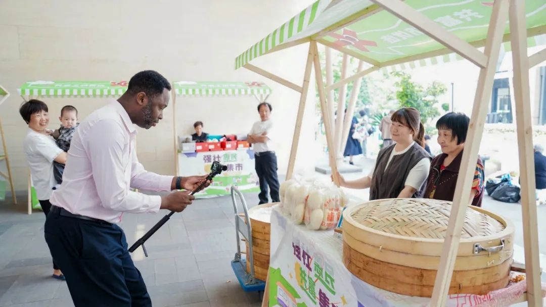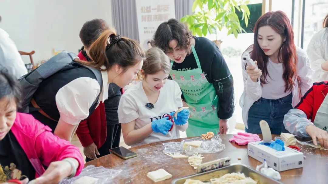 当天上午,外籍青年和本地青年宣讲员还一起走进浣东街道东盛社区,深入探访城市版“枫桥经验”。大家仔细了解了党建引领下的社区自治格局,数字化赋能矛盾预防的创新机制,以及“共享服务”惠及民生的生动案例。在社区共享集市,中外青年与居民们一起动手制作麦花等传统端午美食,亲身体验“邻里互助”的温暖氛围。随后,他们跟随社区志愿者参与“爱心午餐”配送服务,全流程感受诸暨“爱心食堂”传递的善治温度。