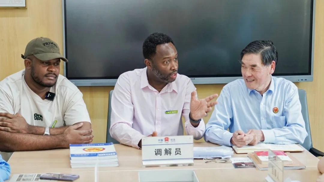 “调解不是判官司,要像煲汤一样掌握火候。”在枫桥镇社会治理中心,“老杨”杨光照带着“小杨”孟柳霞的“诸普”教学让青年们时不时开怀大笑。来自美洲多米尼克的“中国通”帕斯卡,是台州女婿,已在中国生活16年,普通话说得很溜。他现学现卖,在模拟调解中抛出“各退一步”的方案,活脱脱一副“洋和事佬”的模样。“老杨”带着三位“小洋”,通过角色扮演沉浸式体验矛盾调解,在案例模拟中活学活用中国基层治理智慧。当了解到这里年均调解成功率保持在98%以上,在场青年们纷纷竖起大拇指。