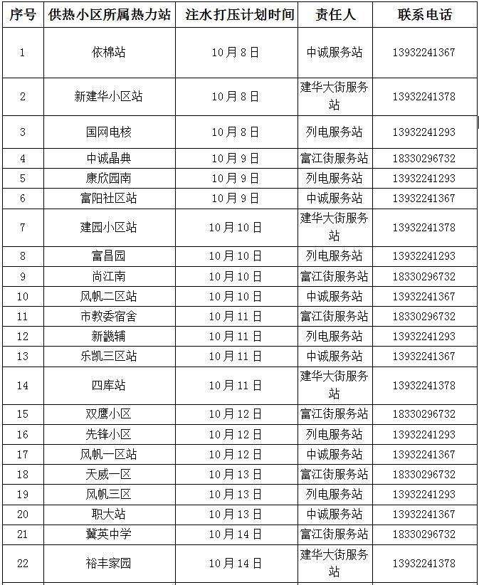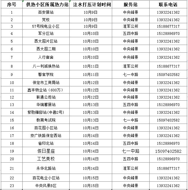 后续,我们将持续在公众号中发布最新注水试压时间计划,请各位热用户家中及物业留人,密切配合供热公司工作。