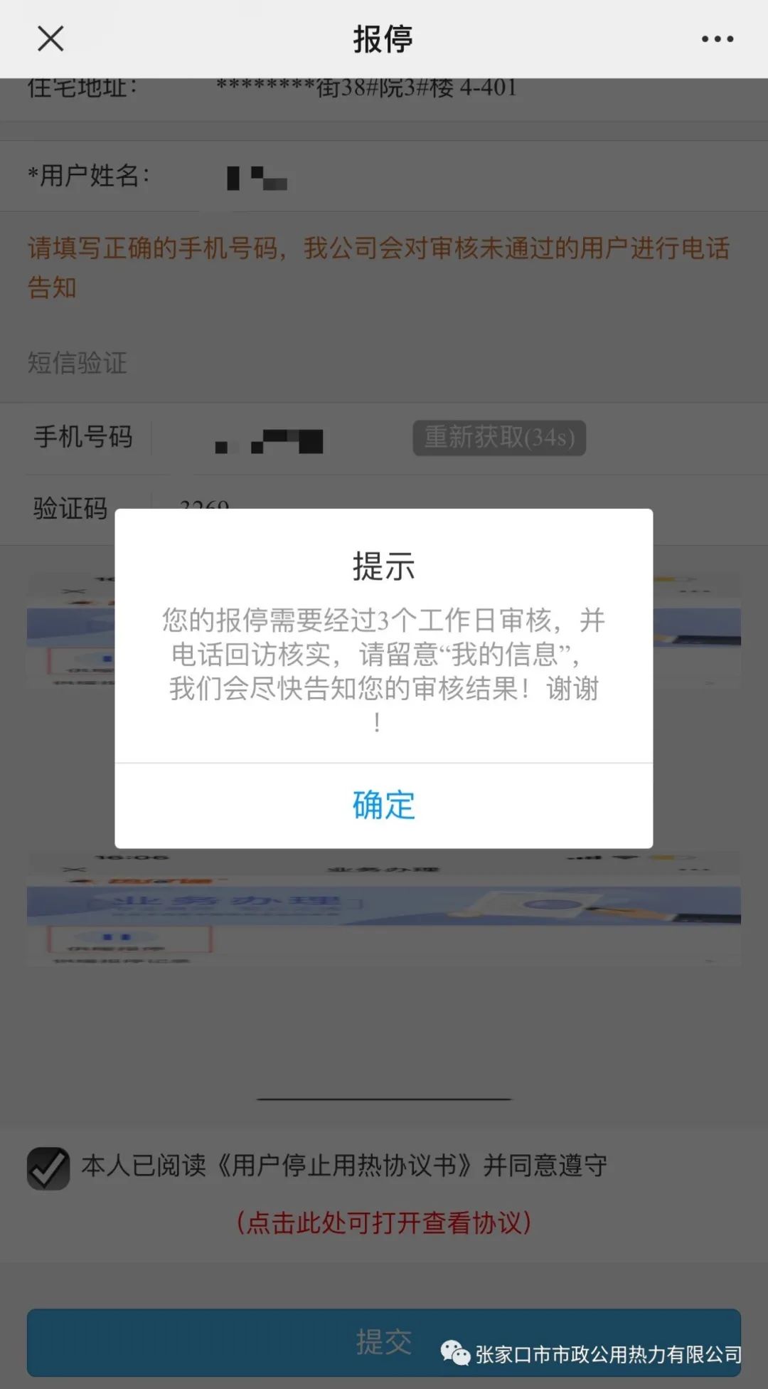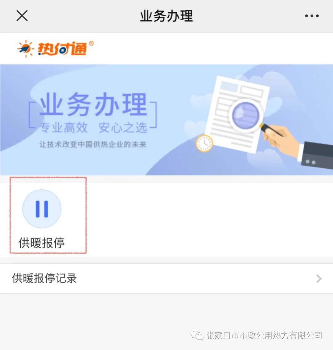 为方便用户足不出户办理报停业务,张家口市市政公用热力有限责任公司已开通微信公众号办理报停渠道。