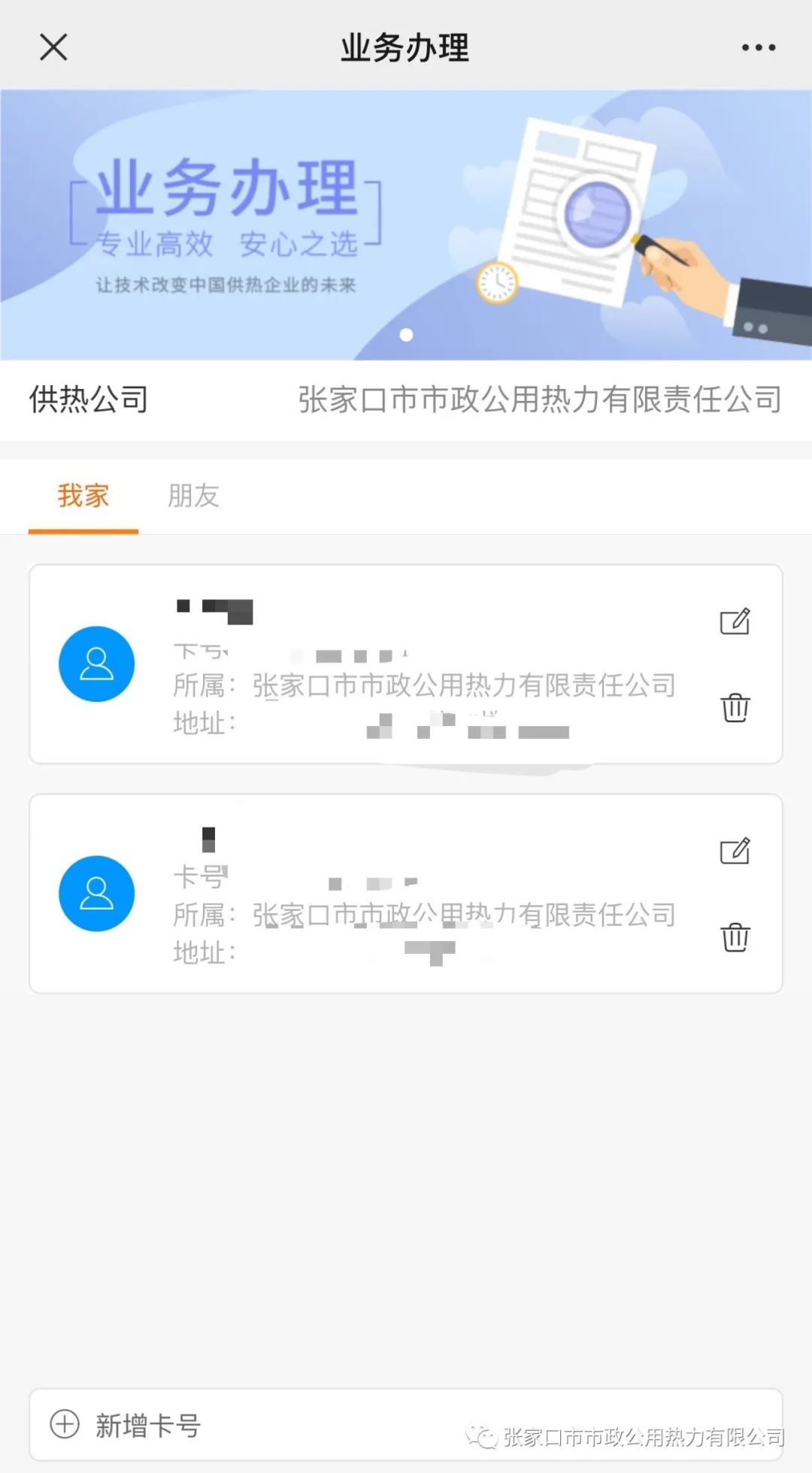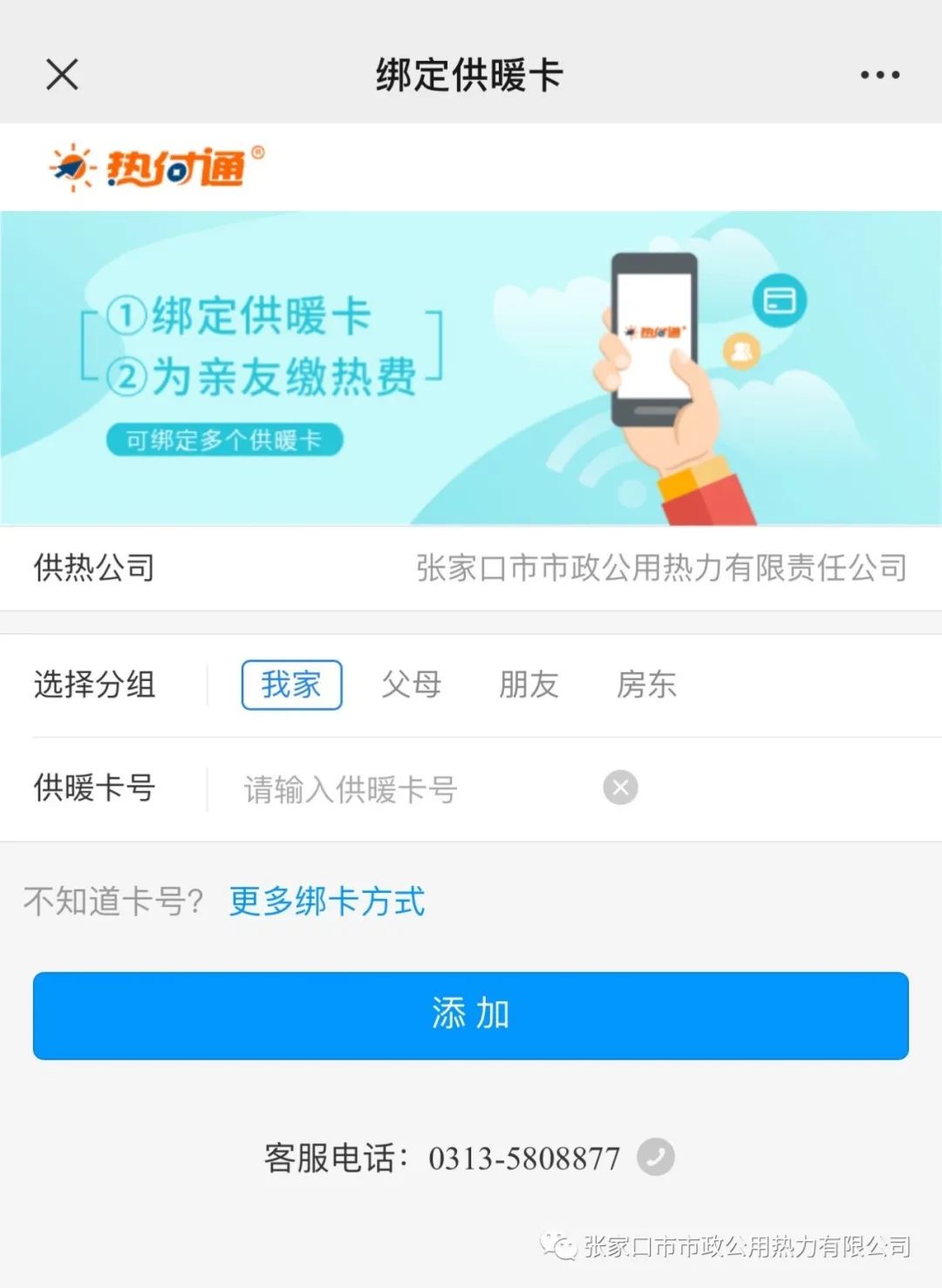 ②点击添加用户信息 → 选择供热卡号添加方式 → 输入卡号 → 点击添加即可。
