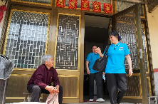 4月29日,王汝芳(右)和崔恒霞(左)与服务对象江爷爷拍照、录影,上传系统进行记录。