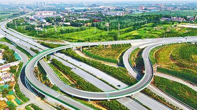 7月24日拍摄的邯武快速路与邯郸绕城高速的互通式立交桥。 河北日报记者 史晟全摄