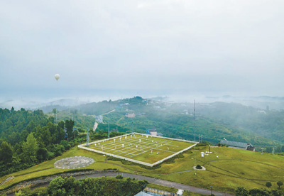 贵州省铜仁市玉屏侗族自治县亚鱼乡郭家湾村,气象技术人员在维护高标准农田气象观测站。胡攀学摄(人民图片)