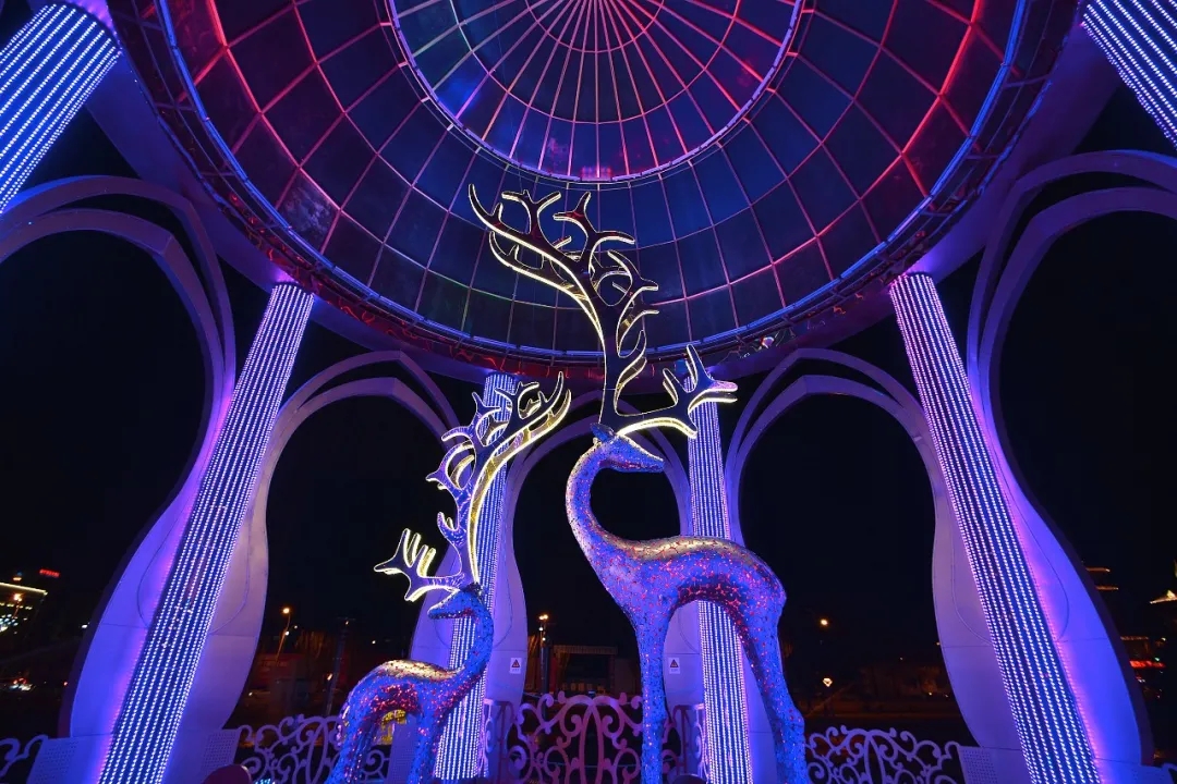 包头市首届冰雪文化旅游节暨固阳县梅令花海冰雪灯光艺术游园会开幕式。