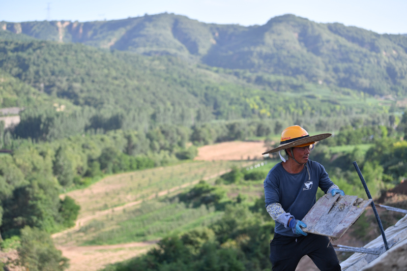 盛夏时节,在陕西黄土高原地区连绵的山峁之间,西安至延安高速铁路正在紧张建设中。