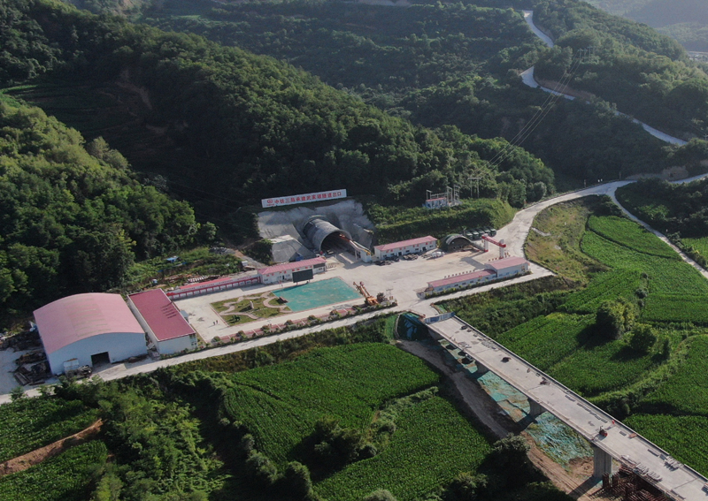 这是位于陕西省延安市富县的西延高铁富县隧道进口(7月21日摄,无人机照片)。
