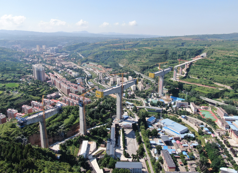 黄土高原沟壑纵横,地质条件复杂。西延高铁全线桥隧占比较高,施工难度大。自开工建设以来,参建单位克服重重困难,统筹兼顾工程建设安全与生态环境保护,施工进度稳步推进。