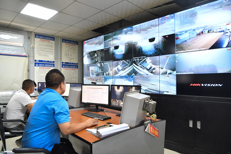 7月21日,中铁二局工作人员在位于陕西省延安市富县的西延高铁XYZQ-9标段拌和站监控设备运行情况。
