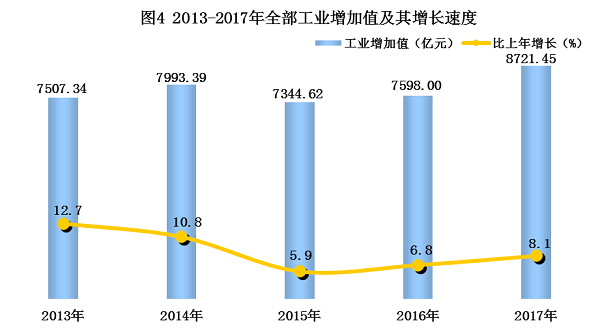全年全部工业增加值8721.45亿元,比上年增长8.1%。其中,规模以上工业增加值增长8.2%。