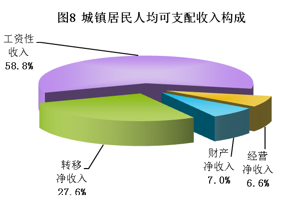全年城镇居民人均可支配收入30810元,比上年增加2370元,增长8.3%。从城镇居民可支配收入来源看,工资性收入18105元,增长7.3%;经营净收入2029元,增长0.7%;财产净收入2156元,增长4.9%;转移净收入8520元,增长13.7%。城镇居民人均生活消费支出20388元,比上年增加1019元,增长5.3%。城镇居民年末人均住房建筑面积32.7平方米,比上年增长0.3%。