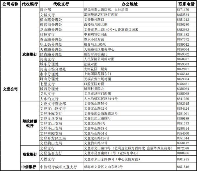文登公司营业厅8:00-15:00(收费)
