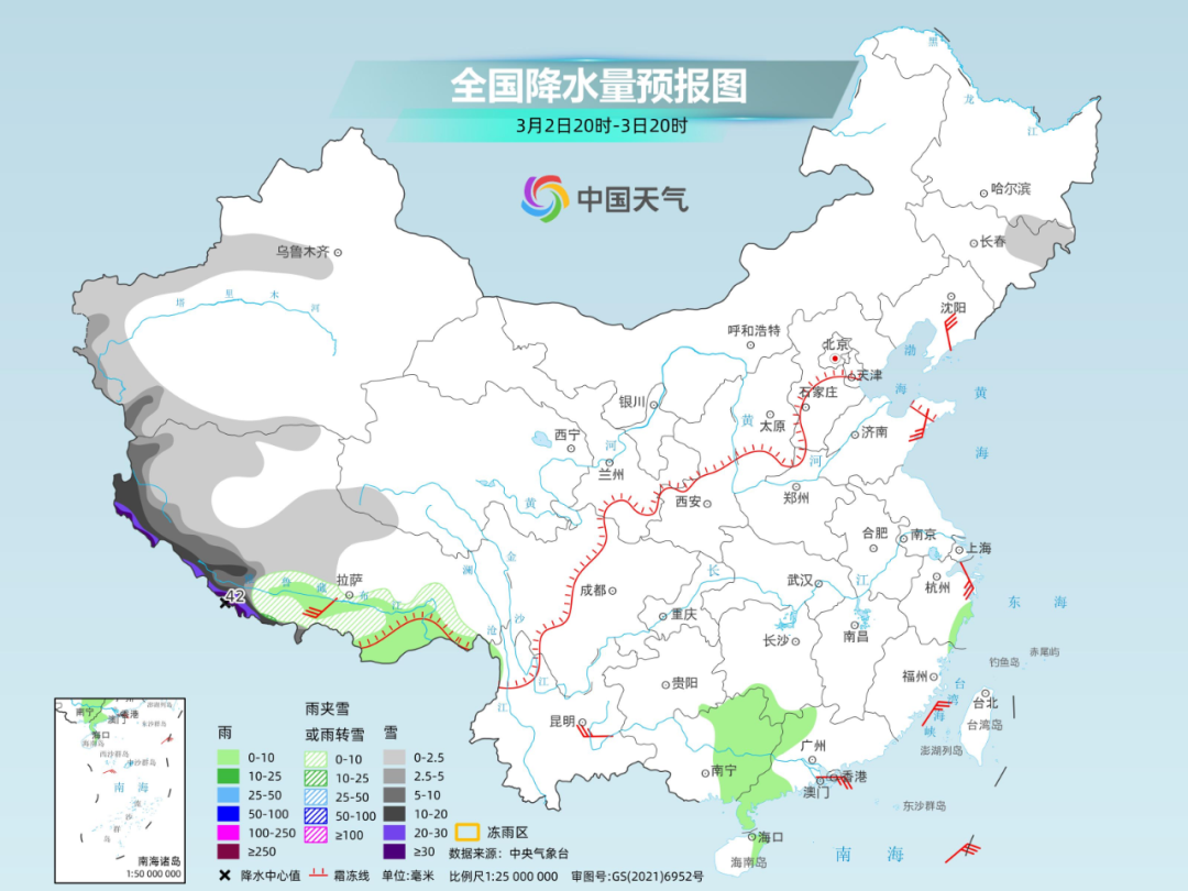周末两天,冷空气影响结束,中东部大部雨雪稀少。