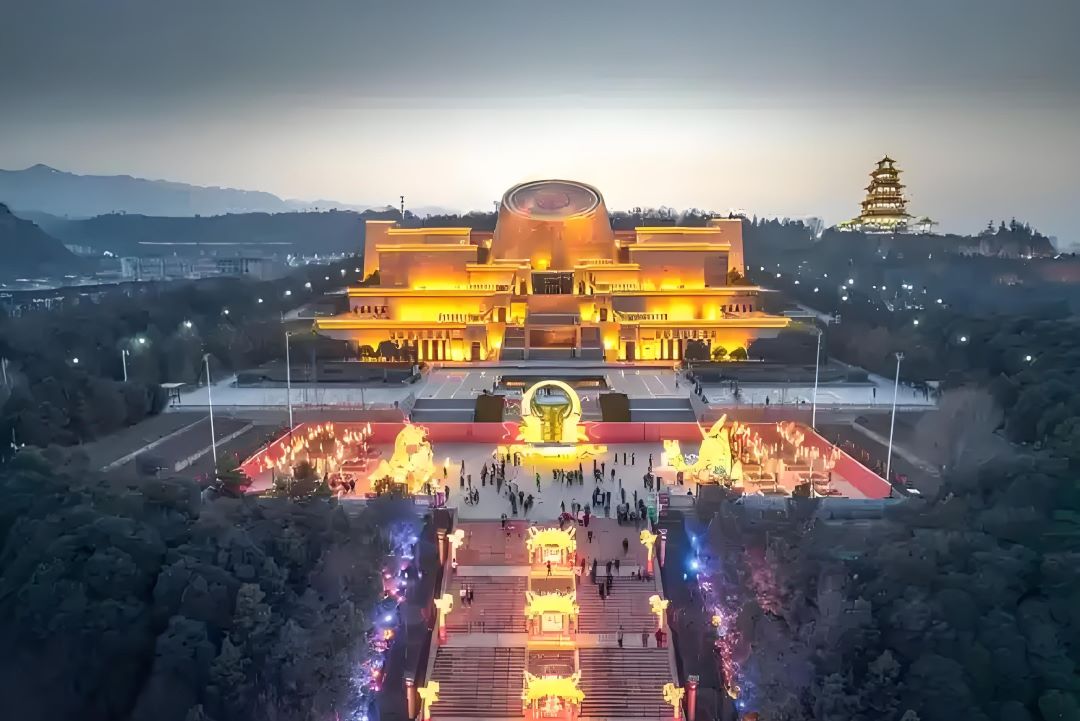 核心亮点:中国唯一青铜器专题博物馆,馆藏何尊(最早「中国」铭文)、逨盘等1500余件文物,石鼓阁可俯瞰渭河全景。