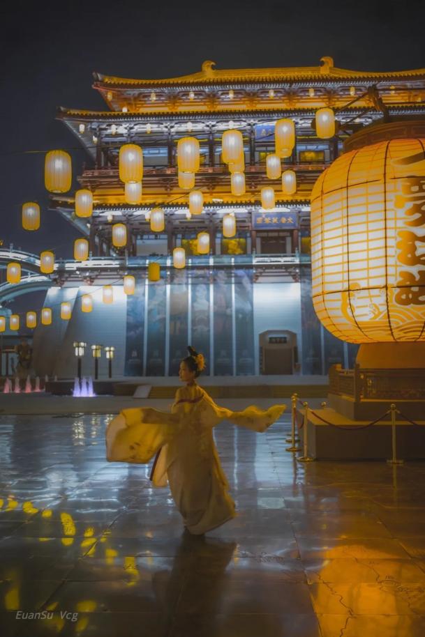 来西安旅游,看到路上有很多汉服小姐姐,我也非常心动,想拍一组照片。看到社交平台上很多人推荐大唐芙蓉园,真的有种一秒穿越汉唐盛世的深度沉浸感。后来我穿着华服在紫云楼下起舞拍照,有些路人就驻足观赏。拍完照后一对爷爷奶奶上前,询问我是不是待会儿有舞蹈表演,在哪看,被问了好几次,自己漫不经心的古典舞展示能被陌生人认可,真的感到非常开心。