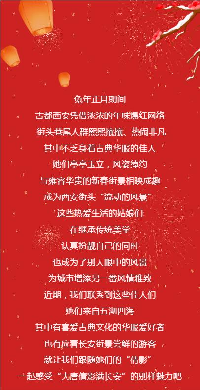 那天在大唐不夜城,街头人声鼎沸,我回头在路边反光的玻璃里看到自己和西安的夜景融为了一体,突然间有种真的穿越到盛世大唐的感觉,那种情绪我会记住很久很久。希望西安一定立足宣传中国传统服饰文化,我们争取每年都来!
