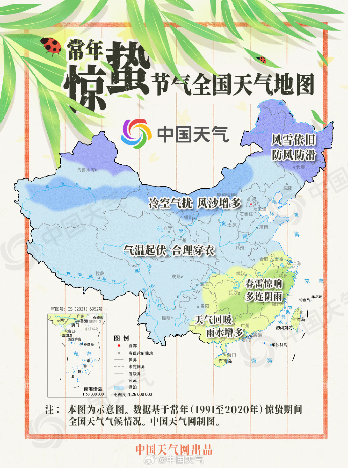从中国天气网推出的惊蛰期间天气地图来看,常年此时,我国大部虽天气回暖,春意渐浓,但冷暖空气仍会“纠缠不休”,气温波动起伏,需根据气温变化合理调整穿着,适当春捂,手腕、腰眼、小腿和肚脐这四个部位最需要好好捂捂。