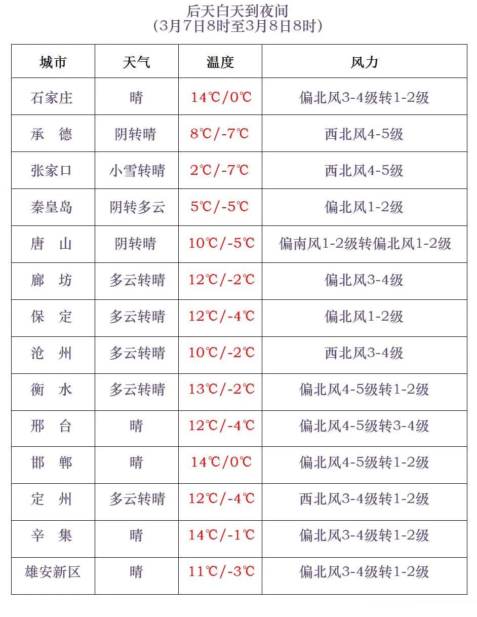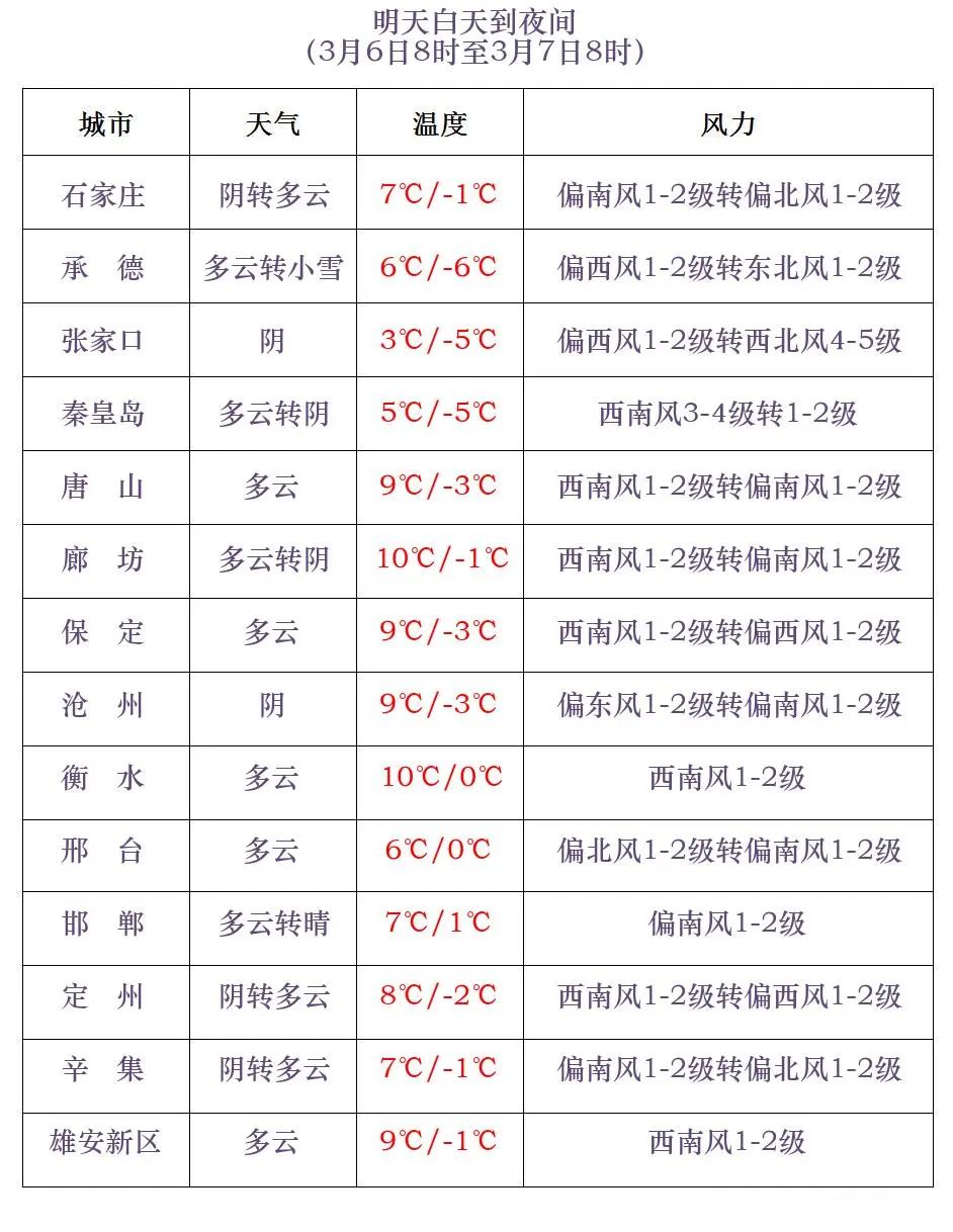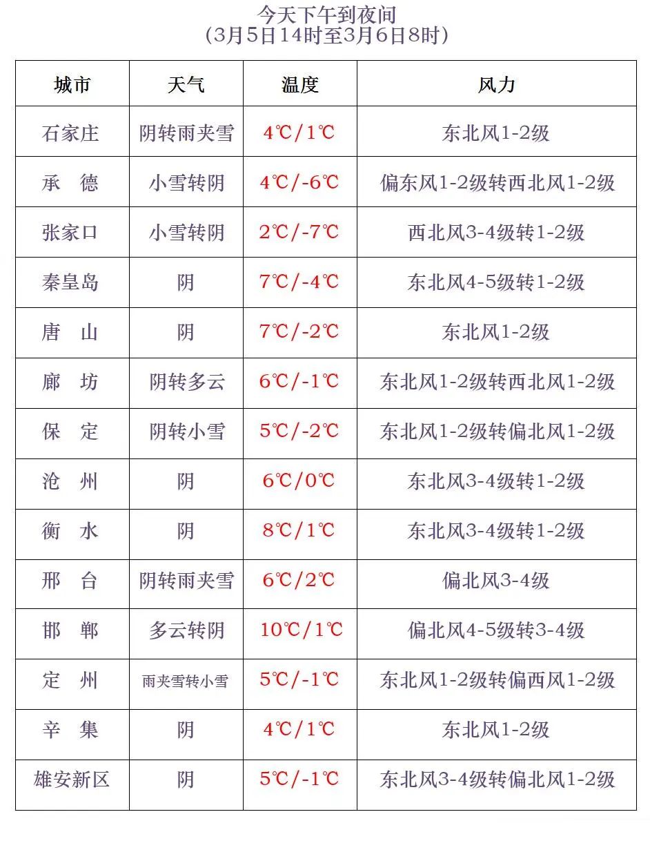 河北省气象台2024年3月5日11时发布天气预报:
