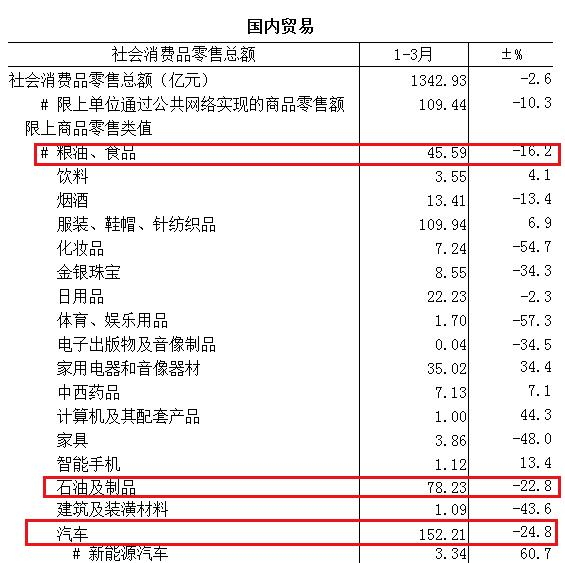 中新经纬客户端发现,一季度,天津在汽车、石油及制品、粮油食品几类权重较大的商品品类上出现下滑,影响了天津的社会消费品零售总额的增长。