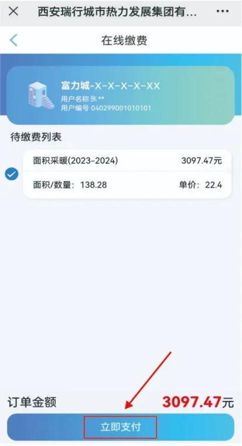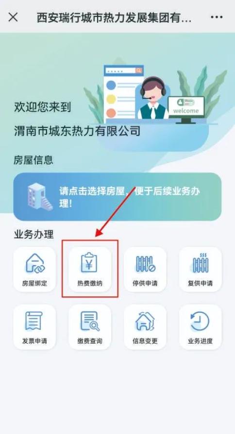④绑定成功后返回操作主界面,点击“热费缴纳”进入立即支付。