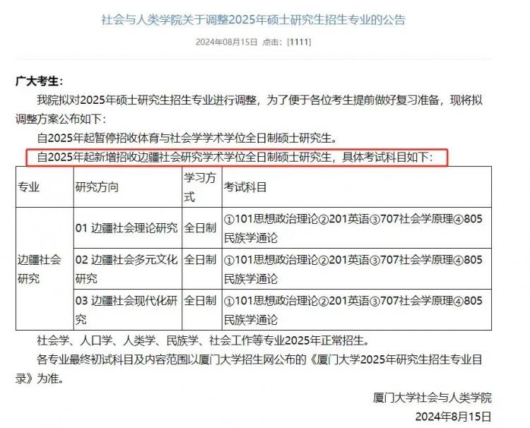自25年起新增招收边疆社会研究学术学位全日制硕士研究生。