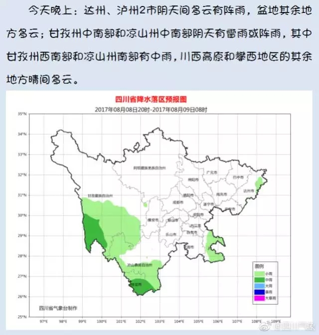 结合四川省气象台天气预报情况,8月8日20时~8月9日20时,全省地质灾害气象风险预警等级为3级(黄色预警,注意级),全省17个地区容易发生地质灾害。