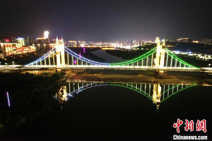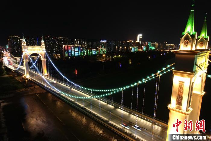 6月7日,陕西宝鸡,联盟大桥夜景如画。中新社记者 张远 摄