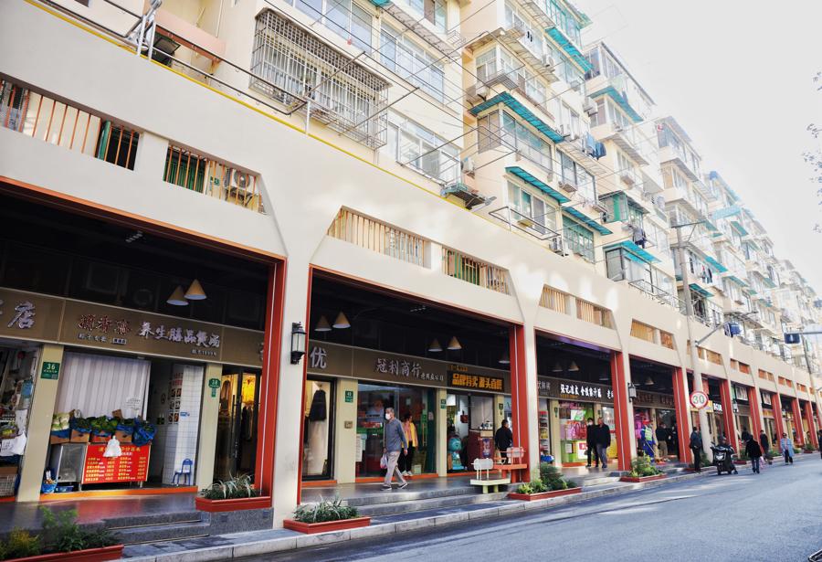 “小金陵路”西凌家宅路烟火气十足,一排“骑楼”下的社区小店,满足了居民生活日常需求。但“骑楼”下环境太差,人走在下面没有幸福感。设计师团队加盟,对这个街区进行更新后,“骑楼”下变得干净整洁,社区小店主感觉“天都明亮了”,沿街还增加一排座椅,居民买好小菜,坐下来休憩、聊天,生活更惬意。
