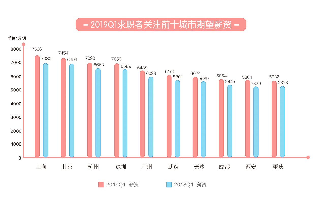 2019一季度人才流动报告:上海平均月薪9723元排名第一