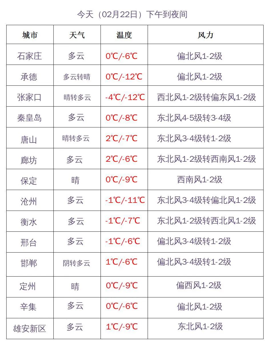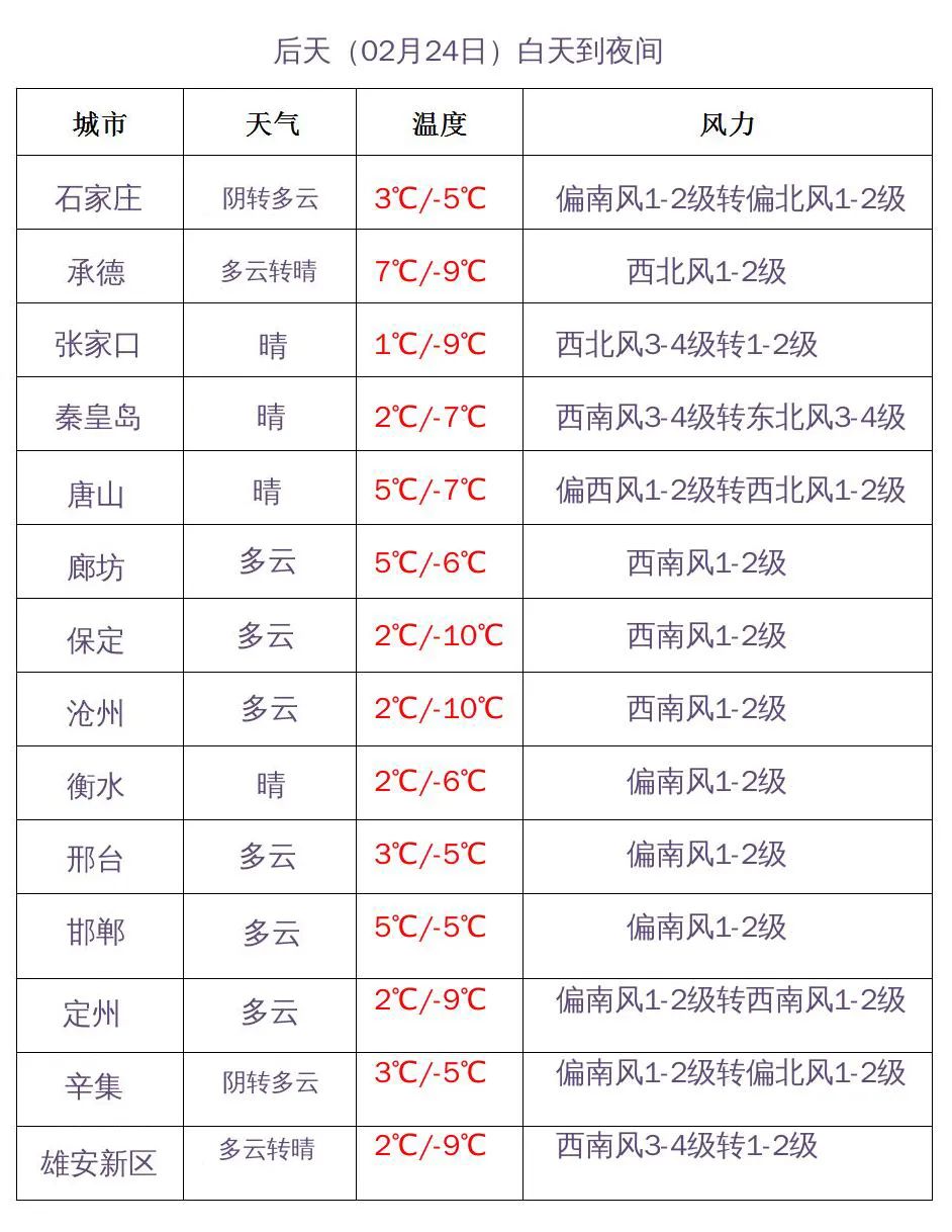 明天夜间到24日,张家口北部、承德北部阴有零星小雪转多云,其他地区多云。