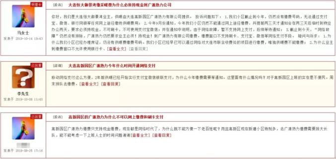 近日,不少市民在民意网上留言,反映广源热力收取取暖费只收现金,非常不便,咨询广源热力何时能开通网上交费。