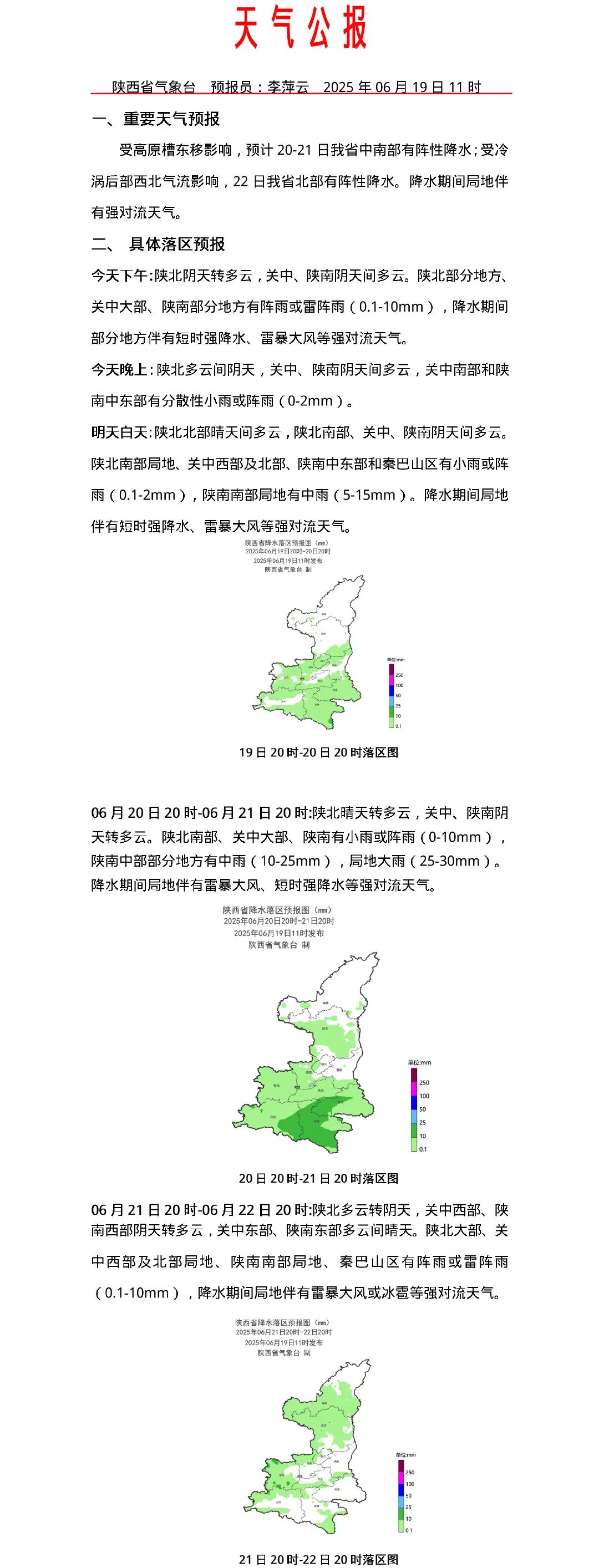 预计今天白天到晚上陕北中部、关中北部局地、秦巴山区有6级以上阵风。陕北南部、关中北部及东部、陕南东部有雷暴。提请相关地区密切关注天气形势,注意防范气象灾害及次生灾害,及时发布预警信号。