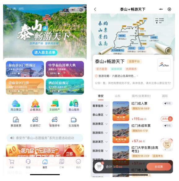 “泰山+畅游平台”小程序集纳各类景区、演艺门票,像网购一样可实现“自主点单”。