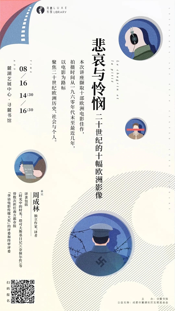 8月16日,曾数次担任南方都市报“华语电影传媒大奖”的评委和终审评委的周成林老师将做客寻麓书馆带来“悲哀与怜悯:二十世纪的十幅欧洲影像”讲座。撷取十部欧洲电影佳作,既有纪录片也有故事片,题材聚焦二十世纪的欧洲历史、社会与个人,拍摄年代从1960年代末期直到近几年,从较为人知的经典到鲜为人知的杰作,重点关注东欧与西欧数国的电影作品,概述与解析旁及相关电影以及非虚构的文字叙事和历史著作。