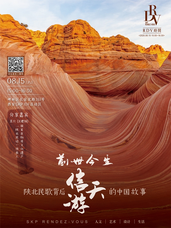陕北人把时间酿成酒,把苦乐唱成歌,把生活打理成艺术,生产生活充满了仪式感。土窑洞、小米饭,适者生存成就“米脂婆姨绥德汉”,回望历史,信天游从远古响起,陕北民歌唱红了天(东方红)、唱恸了地(哀乐)、唱出一个欢天喜地(春节序曲)的文化传奇,成了陕北人的精、气、神,也成了中国人表达民族大喜大悲的必然选择。8月15日,在西安SKP RENDEZ-VOUS由国家非物质文化遗产“陕北民谚”传承人——王六(王建领)老师,带你倾听从远古响起的信天游。