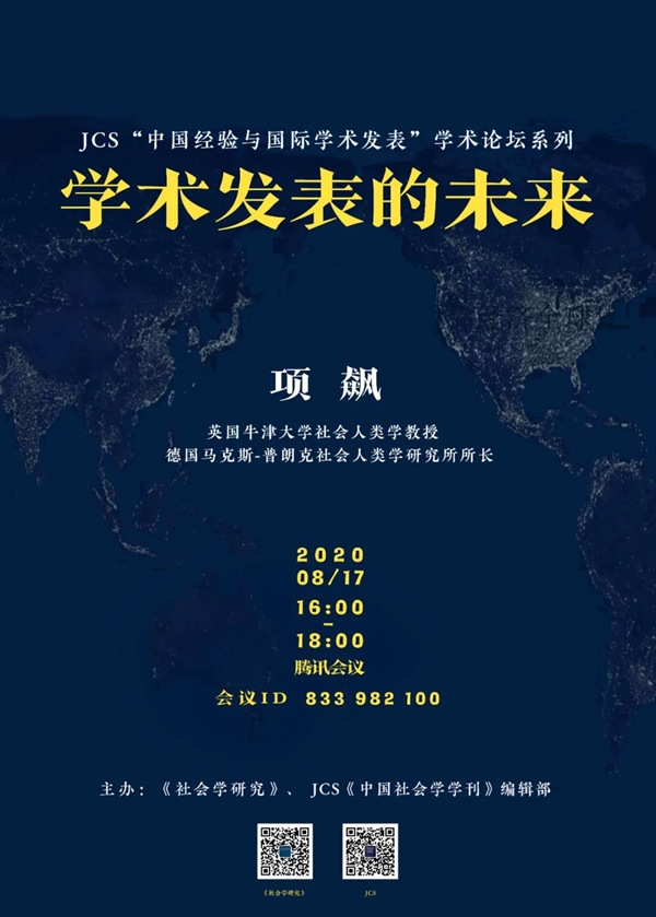 8月17日下午,JCS《中国社会学学刊》编辑部将举办一场线上分享会,主题是“学术发表的未来”。这次会议的主旨分享来自项飙老师,为什么会请项飙老师呢?主题又为什么是“学术发表的未来”呢?请大家来听。