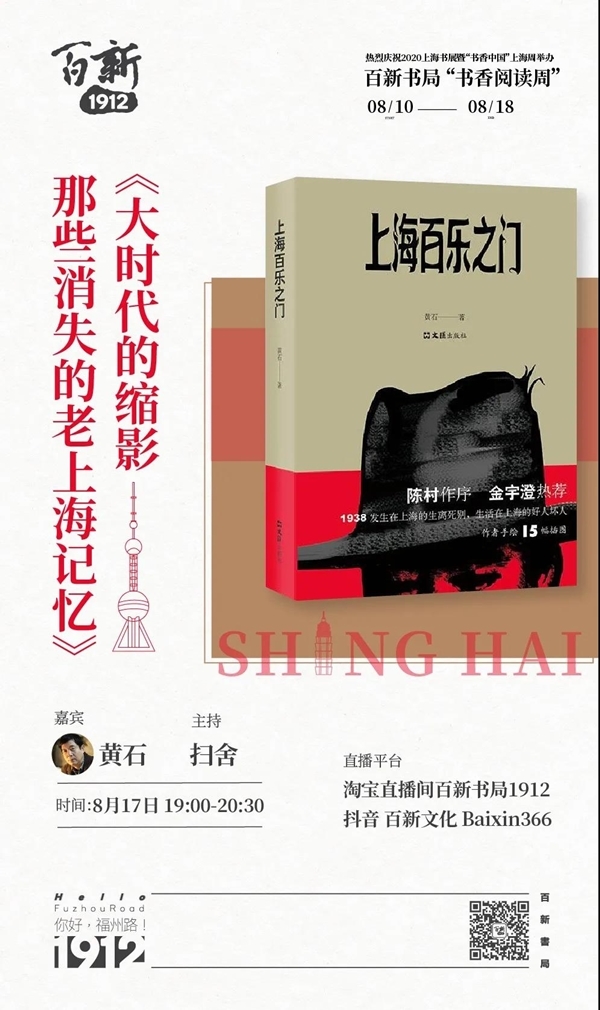 我们邀请黄石老师来分享旧时代的上海,消失的时代特征、人物、职业、十里洋场的传奇,带你回到那个久远的年代;关于小说的创作过程及上海特征的写作,黄老师又有什么想法呢?
