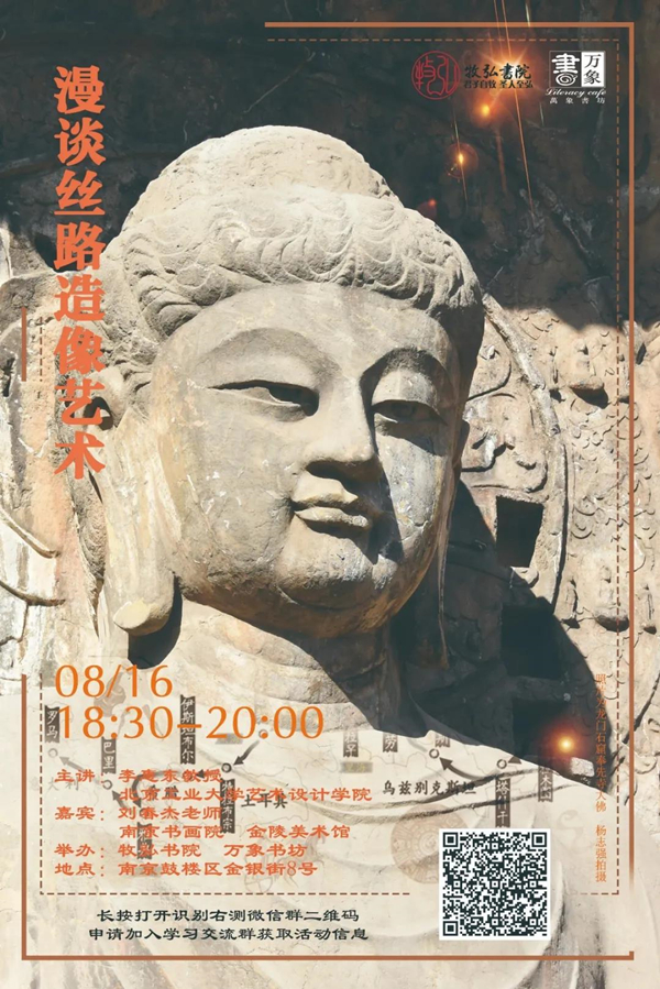 佛陀造像沿着丝绸之路一路走来,历经近两千年的熔炼,在世界艺术舞台上引领着东方神韵的创造。在这条路上,文化融合经久不衰,也留下诸多文化遗迹。8月中旬,北京工业大学艺术设计学院雕塑系主任李惠东教授,做客牧弘书院,在杭州、上海、南京等地,以新著《佛陀的容颜》的出版为契机,和大家一起分享关于丝路佛陀造像的故事。8月16日,李惠东将和嘉宾刘春杰在万象书坊漫谈丝路造像艺术。