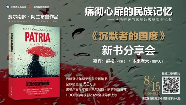 上海译文出版社携手米盖尔·德·塞万提斯图书馆,在8月15日下午,特邀作家赵松和影评人本来老六,为大家带来西班牙长篇小说《沉默者的国度》中文译本新书分享会,一起揭开西班牙那段痛彻心扉的民族记忆,并通过一段采访视频听一听作者本人的心声。