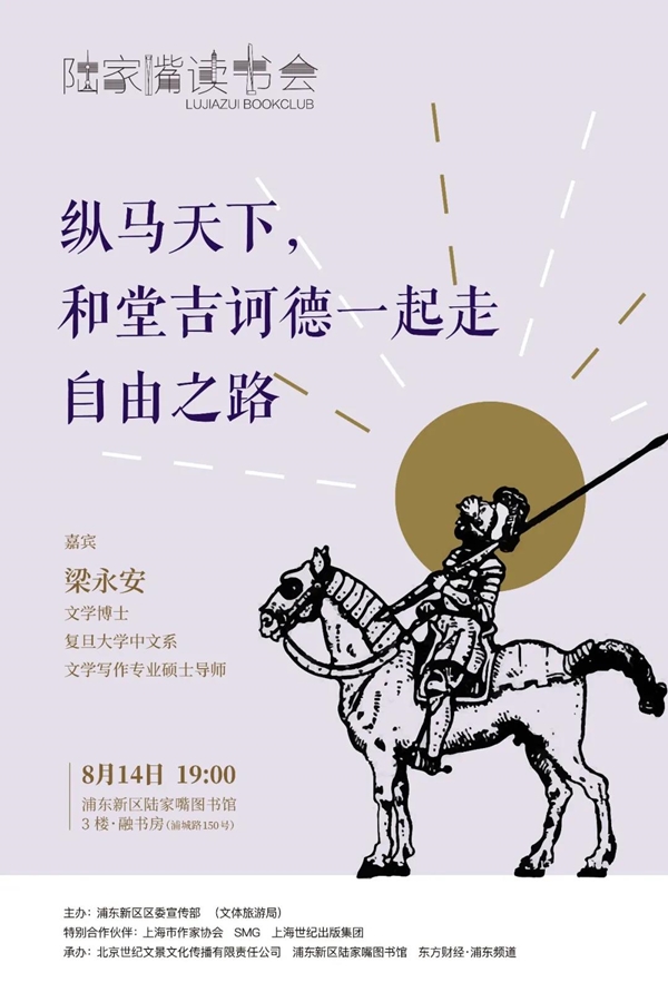 本周五晚,陆家嘴读书会将恢复疫情以来首次线下活动。本次活动,我们邀请到文学博士、复旦大学中文系文学写作专业硕士导师梁永安做客现场,带领读者跟随堂吉诃德一起走自由之路,体会梁老师对于走出凝滞的期待。