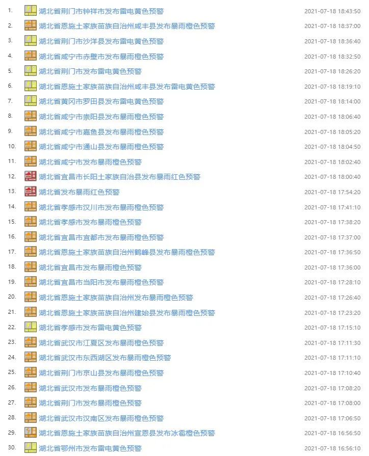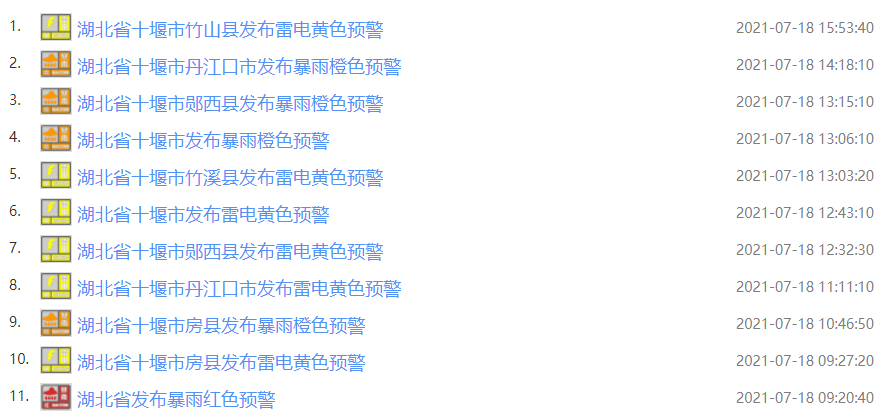 今天,十堰市气象台连发11条天气预警。