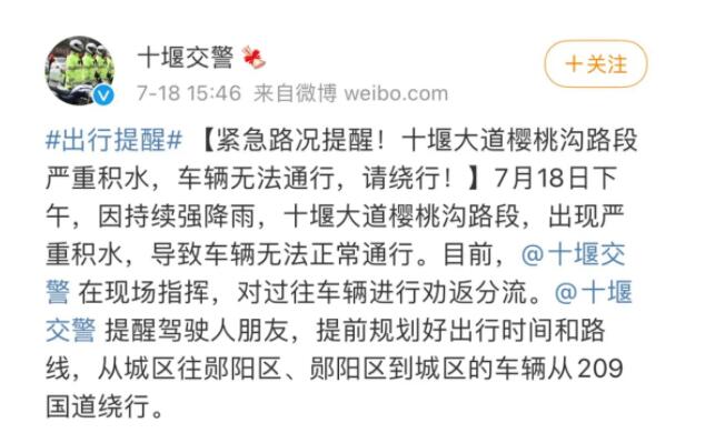 十堰大道樱桃沟路段积水严重