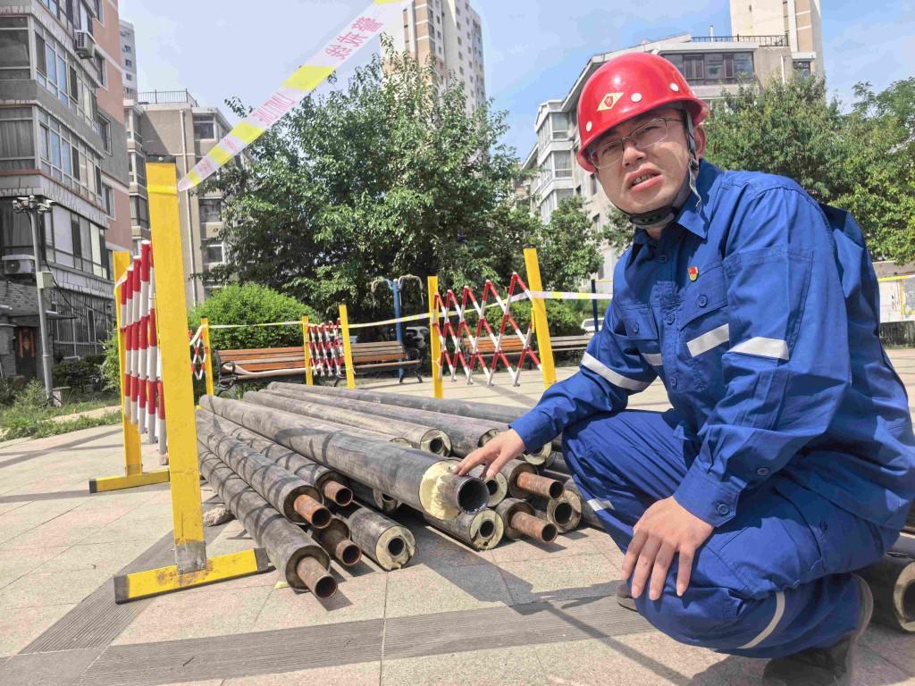 “新换的‘黑夹克管’可不仅是升级。”技术员展示截面,聚氨酯保温层裹着螺旋钢管,外覆聚乙烯保护壳。“这种管材寿命延长至20年,热损失率能降低60%。”在狭窄的管道井内,工人采用“错峰施工和微创工艺”,在早7时前开挖,午间停工避暑,采用便携式焊机在井内直接作业,单元门破损面积控制在0.5平方米以内。