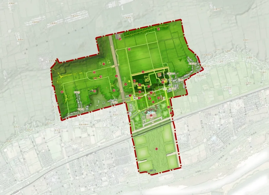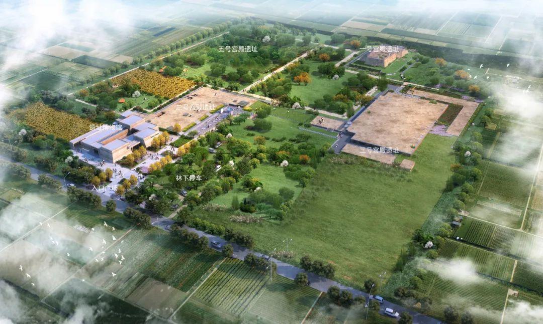 公园聚焦考古资料详实、保存状态良好的一、二、三、五、六号宫殿及府库等遗址群落,构建系统性保护展示体系。在规划设计中,严格遵循“最小干预”与“活态传承”原则,严守土地用途管制红线,创新采用特色农作物景观化种植等方式,生动勾勒遗址空间布局,并通过数字化与实体标识相结合的阐释系统,深度挖掘与展示历史文化脉络。