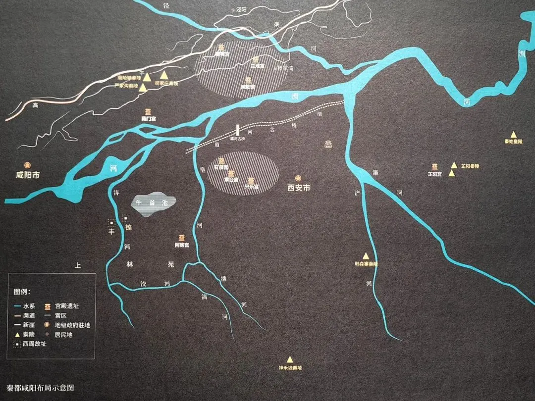 广义的秦咸阳城包含南北城区、多处公王陵及数千座墓葬组成的陵墓区、上林苑为主的园囿区等部分,涉及范围横跨渭河南、北,并建有多座柱梁木桥。
