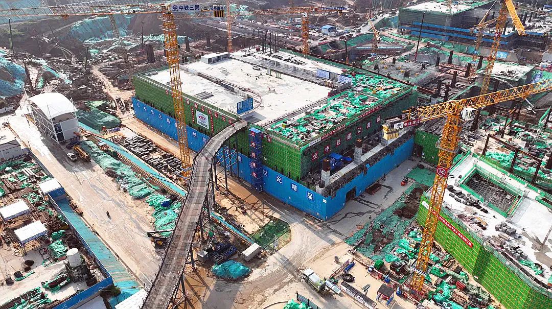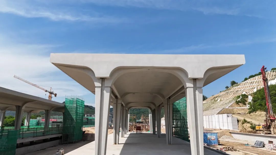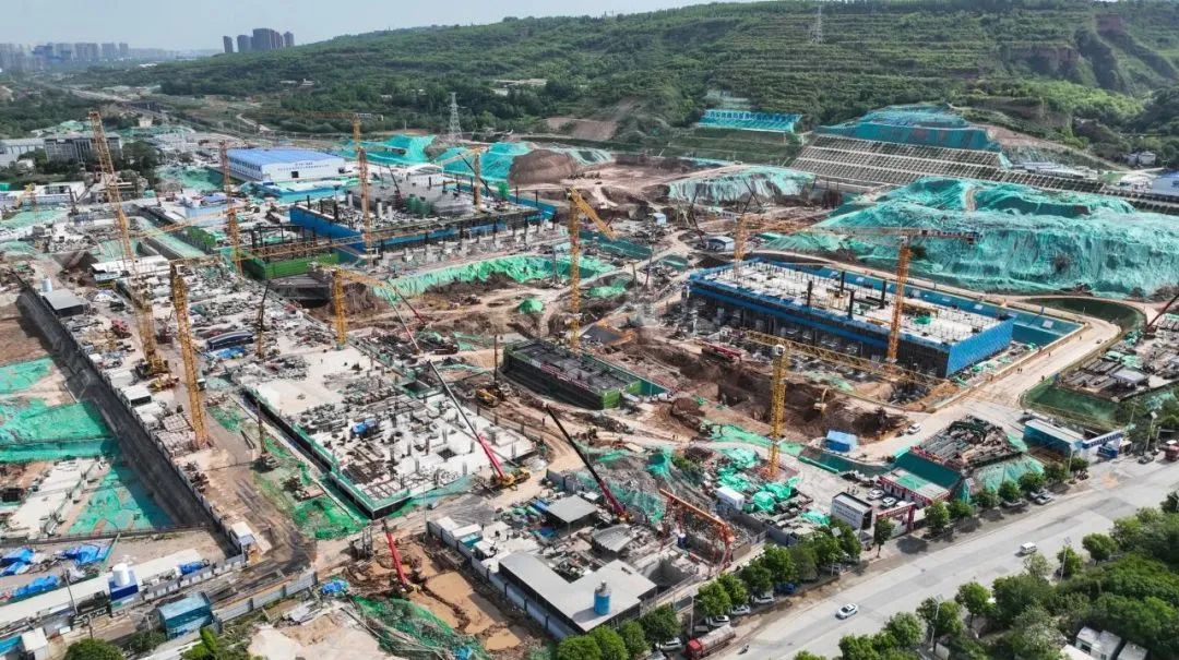 西安东站主站房及侧式站房于2023年4月同步开工。2024年6月4日,随着北侧高架落客平台首块混凝土结构顺利封顶,该站正式转入高架站房主体结构施工阶段。