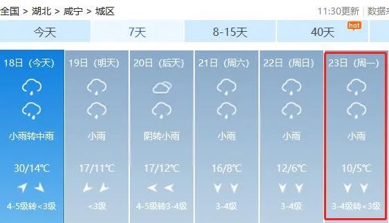 最低气温:鄂西北7-10℃;其他地区11-14℃