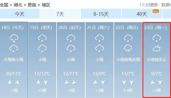 20日天气:鄂西北、鄂西南、江汉平原阴天转小雨;其他地区阴天间多