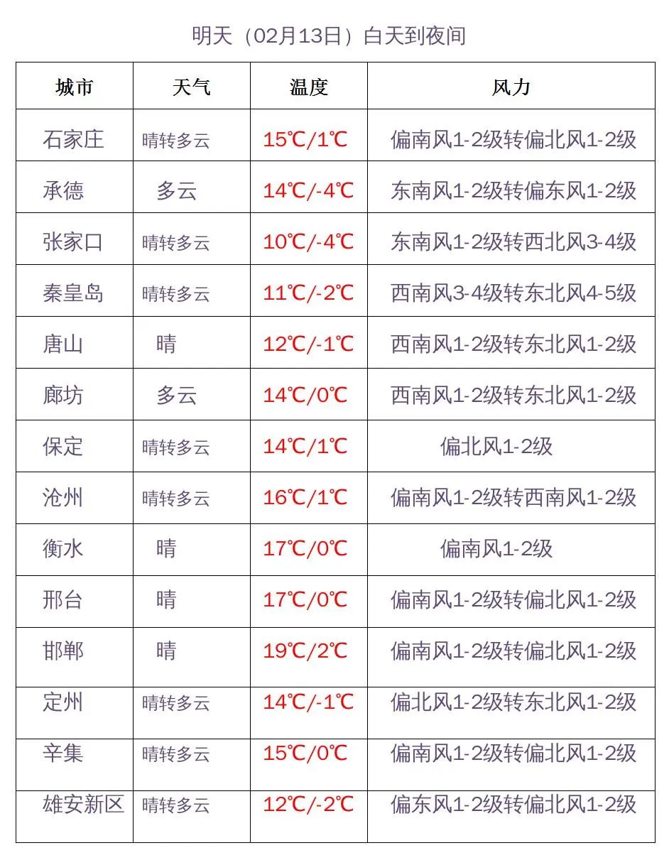 明天夜间到14日,坝上地区多云转阴有小雪或零星小雪,其他地区多云间晴。